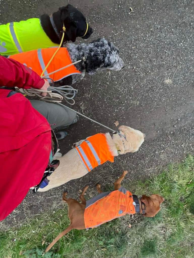 Whether your dog needs a midday energy release or regular exercise, my dog walks are more than just a stroll – they’re purposeful, enriching, and tailored to your dog’s pace and personality. I offer pack walks on Tuesdays and Thursday mornings, where I will take your dog on approximately a one hour walk alternating on and off leash, with a group of dogs. Prerequisite for pack walks is one 1:1 training session with me to establish dog’s skills. Dogs must be e-collar trained for recall for off leash privileges (happy to train this!).